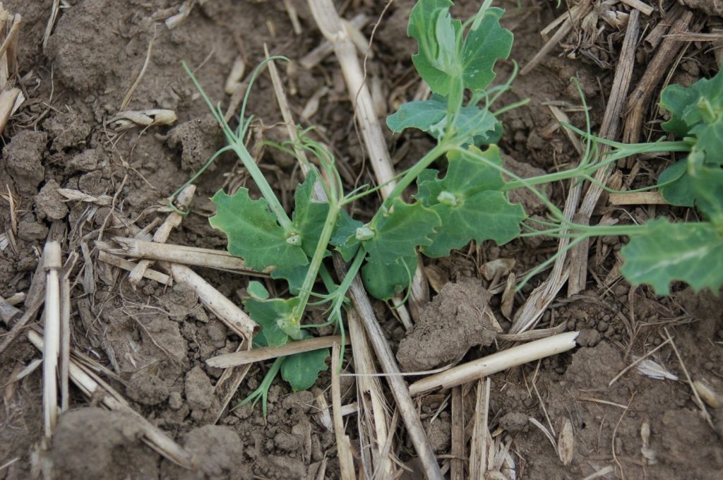In spring-planted peas, one cultural practice to limit pea leaf weevil damage is to delay the planting of a pea crop to avoid the peak emergence and feeding time of the adult weevils, thus preventing severe foliar damage, reducing total number of eggs laid in a field, and limiting damage done by larvae to the nodules/roots. However, this cultural practice is not feasible for winter pea production because the peas are planted in the fall when plants may develop significant foliage going into winter. By the time the adult pea weevils emerge in the spring, there is plenty of foliar food from the surviving winter pea leaves, allowing them ample food to reproduce. In fact, there is often sufficient foliar coverage going into winter to allow adult weevils protective coverage for over-wintering in the fall. In addition, winter pea nodules often develop prior to the onset of winter and survive on roots and are available as preferred larval food in the spring.