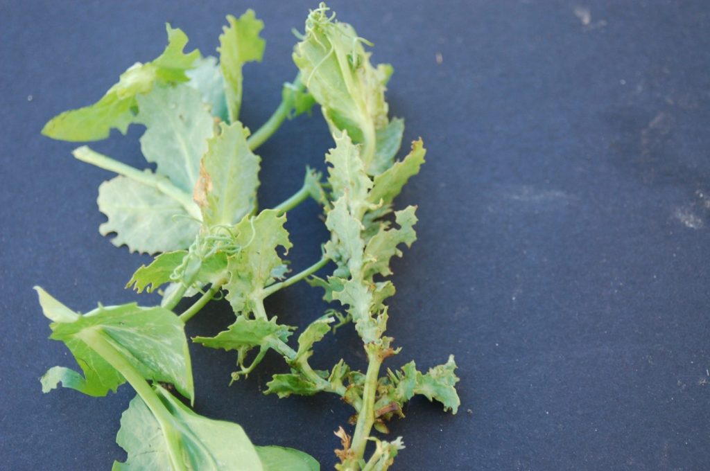 Figure 4. Pea foliage severely damaged by pea leaf weevil (Photo: Lyndon Porter).