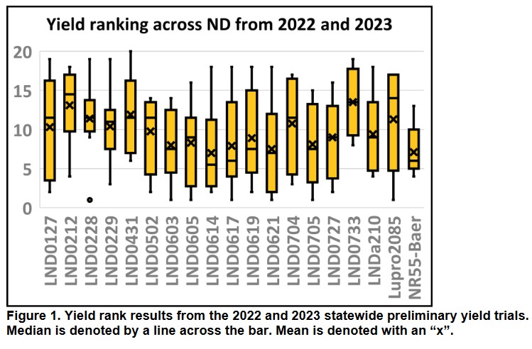 the similar yield means in Figure 1. Individually, line LND0614 had ranked in the top three at